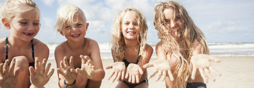 Børn nyder sand og vand i Hvide Sande. Foto: hvidesande.dk